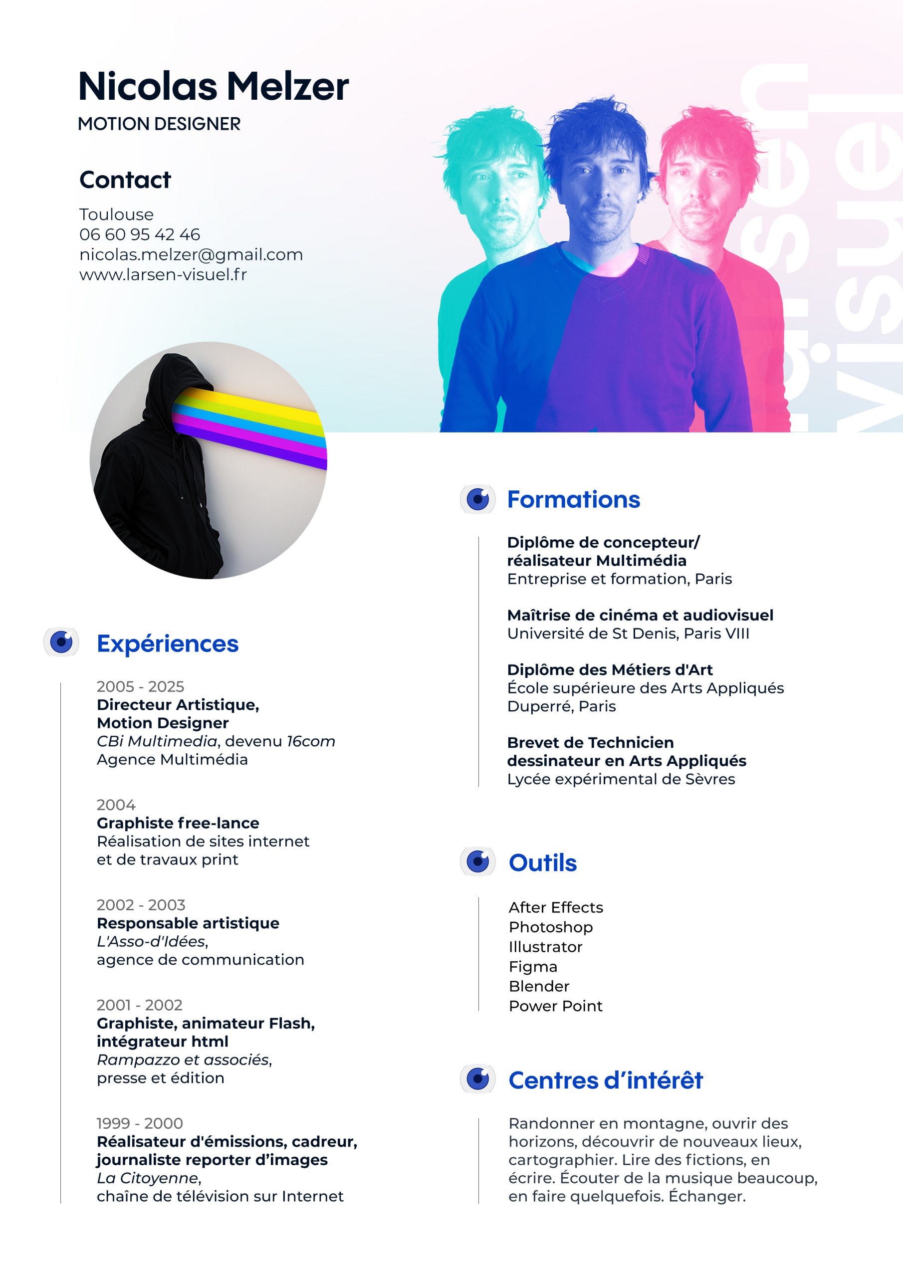 Après avoir oeuvré dans le print, le webdesign, la création Powerpoint et beaucoup d’animation, je me suis spécialisé depuis une dizaine d’années dans le Motion Design et la création vidéo.
